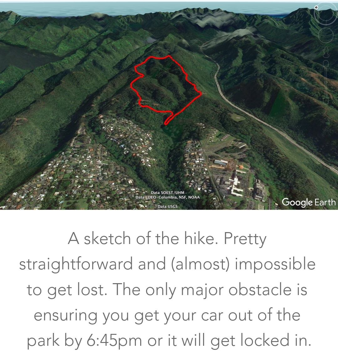 It's a great, mostly shaded, easy to follow trail through different types of terrain and a neat view of H3 and the tunnels leading to the windward side of Oahu!